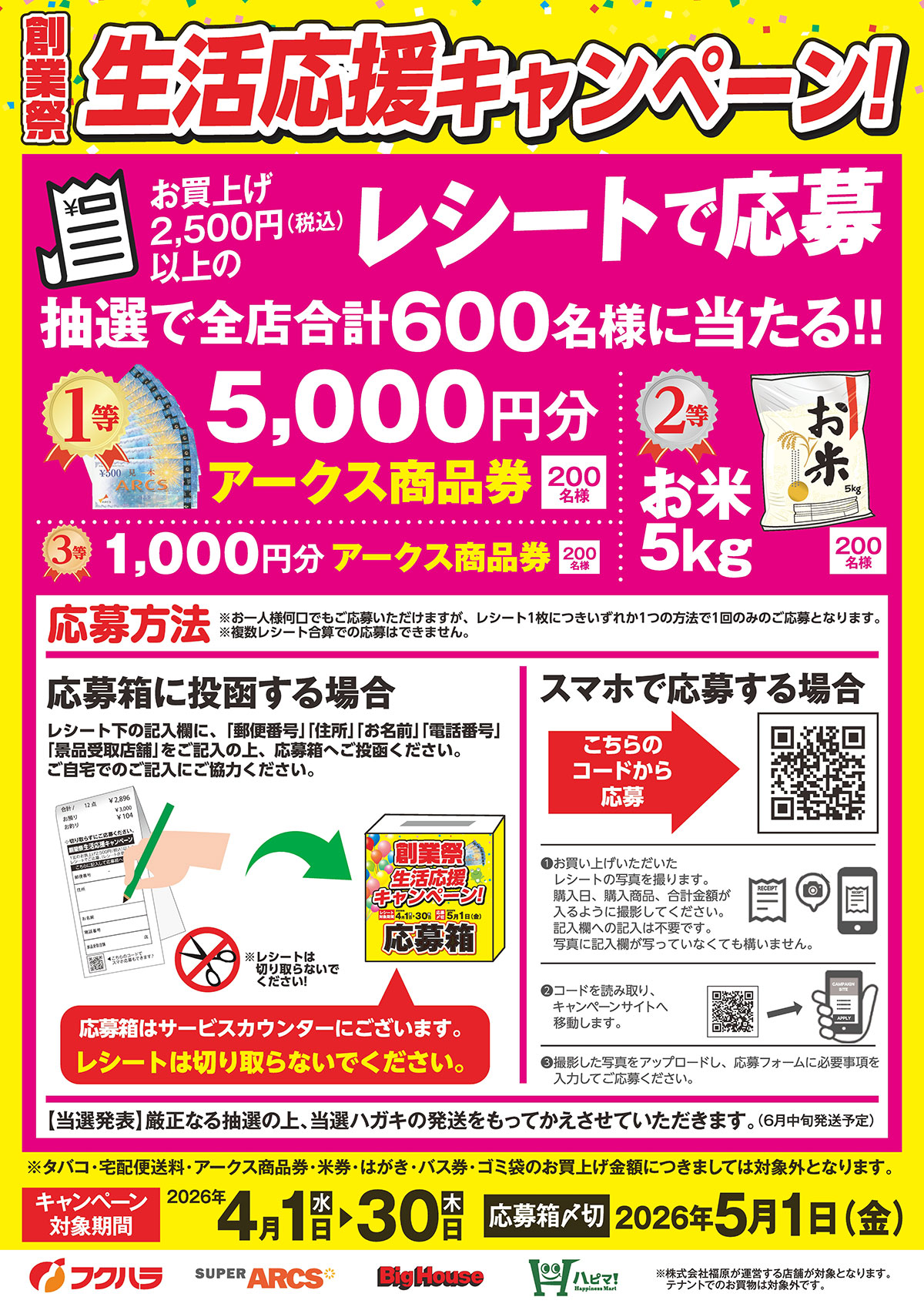 〈創業祭〉生活応援キャンペーン!2026 郵便番号 ※ 〒 - 住所 ※ マンション名など 氏名 ※ 電話番号 ※ - - 景品受取店舗 ※ 受取店舗を選択してください 西帯広店(帯広市西23南3) いっきゅう店(帯広西19南2) 弥生店(帯広市西7南29) 西18条店(帯広市西18北1) 自由が丘店(帯広市自由が丘) 西15条店(帯広市西15北4) 西12条店(帯広市西12南3) 音更店(音更町木野大通) すずらん台店(音更町) 札内店(幕別町札内) 若草店(幕別町札内若草町) 幕別店(幕別町錦町) 芽室店(めむろーど内) 清水店(清水町本通) 新得店(新得町本通) 屈足店(新得町屈足) 鹿追店(鹿追町新町) 大樹店(大樹町西本通) るる店(広尾町丸山通) 池田店(池田町) 本別店(本別町) 足寄店(足寄町西町) 浦幌店(浦幌町幸町) スーパーアークス鳥取大通店(釧路市) ビッグハウス旭町店(釧路市) 星が浦店(釧路市星が浦 ) 昭和店(釧路市昭和中央3) 中園店(釧路市中園町) 公立大前店(釧路市文苑4) 武佐店(釧路市武佐3) 春日店(釧路市春日町) ハピネスマート店(釧路市春採6) 愛国店(釧路市愛国東1) 桂木店(釧路町桂木6丁目) 光和店(釧路町光和5丁目) スーパーアークス中標津店(中標津町) 中標津店(中標津町東5) 摩周店(弟子屈町鈴蘭) 標茶店(標茶町開運町) 厚岸店(厚岸町字港町) 別海店(別海町別海旭町) レシートの画像 ※ × レシートの画像2枚目(スマートレシートの場合など) × 個人情報保護方針の同意「個人情報保護方針 https://www.arcs-g.co.jp/privacy-policy/」をお読みになり、同意のうえご応募ください。 上記、個人情報保護方針に同意した方は左記にチェックを入れてください。